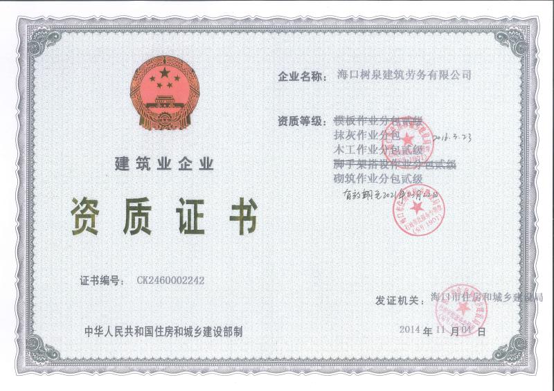 ??跇淙ㄖ趧?wù)有限公司成立于2011年,公司位于海口,其前身是一家專業(yè)建筑施工隊,自2004年即開始在海南從事建筑勞務(wù)施工。自成立至今,公司已經(jīng)擁有一支科學(xué)管理、質(zhì)量過硬、能打硬仗,搶工期的專業(yè)隊伍。能獨立承擔(dān)大中型工業(yè)與民用建筑 、室內(nèi)外裝修、各類機電設(shè)備安裝工程。代表工程有海口濱海華庭、三亞時代海岸T01/02/04/05棟高層、合肥東海花園二期、陵水富力灣B區(qū)高層、三亞金中海(酒店)、瓊海大印經(jīng)典花園、海口環(huán)球海景大酒店(四星級酒店,在建中)、陵水珍珠大廈(五星酒店)、海口萬達廣場、美蘭機場二期。